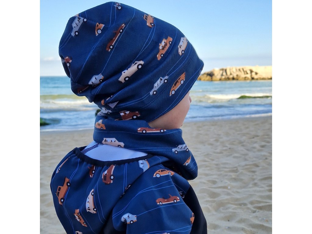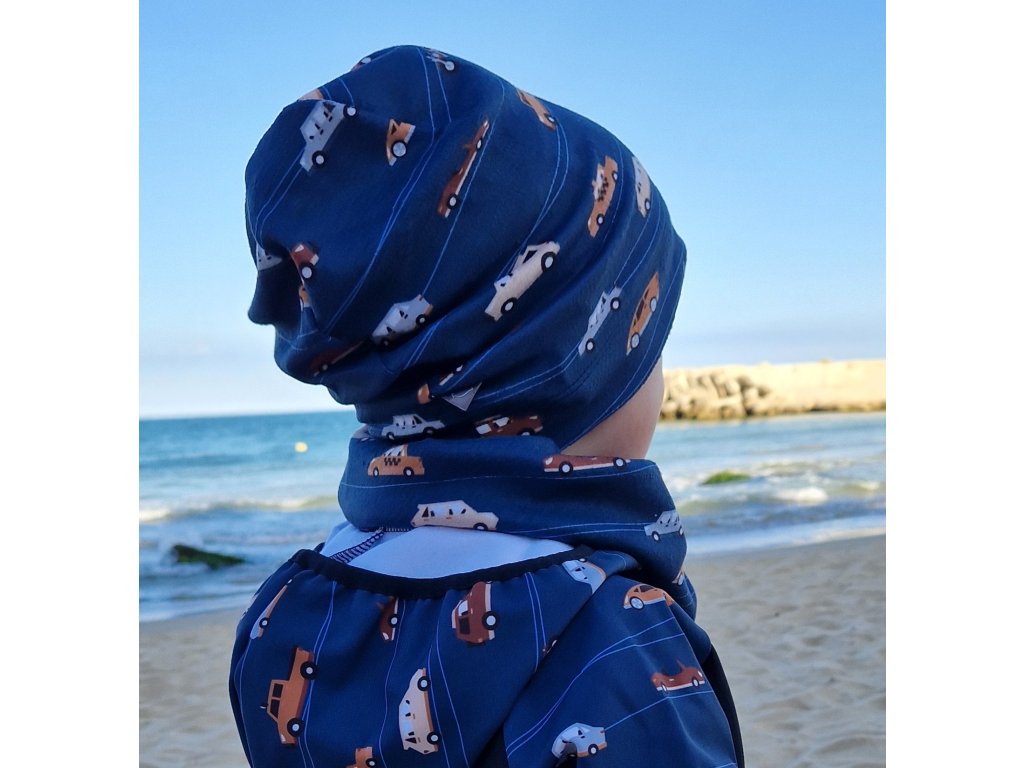Flísová čepice Yháček, jednovrstvá, Auta