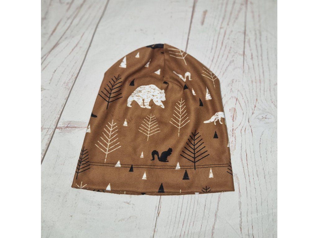 Flísová čepice Yháček, jednovrstvá, Lesní zvěř na karamelové