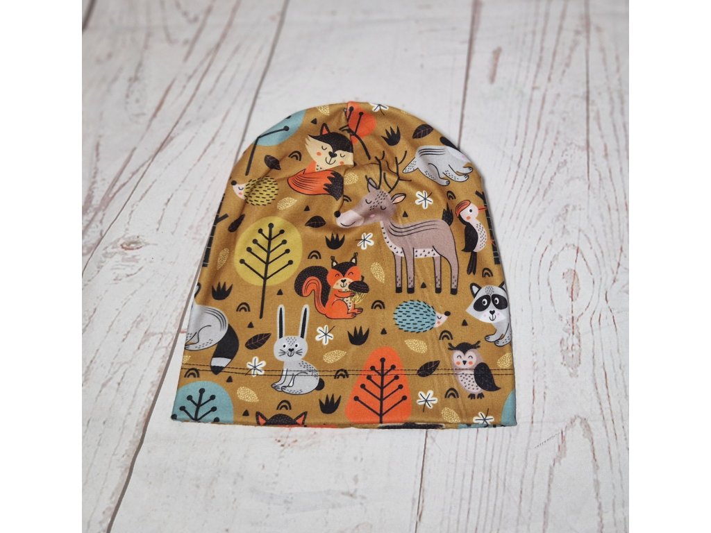 Flísová čepice Yháček, jednovrstvá, Lesní zvířátka okr