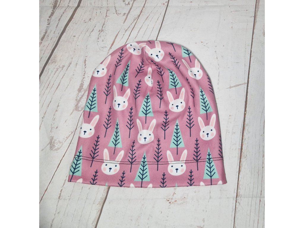 Flísová čepice Yháček, jednovrstvá, Zajíčci na starorůžové