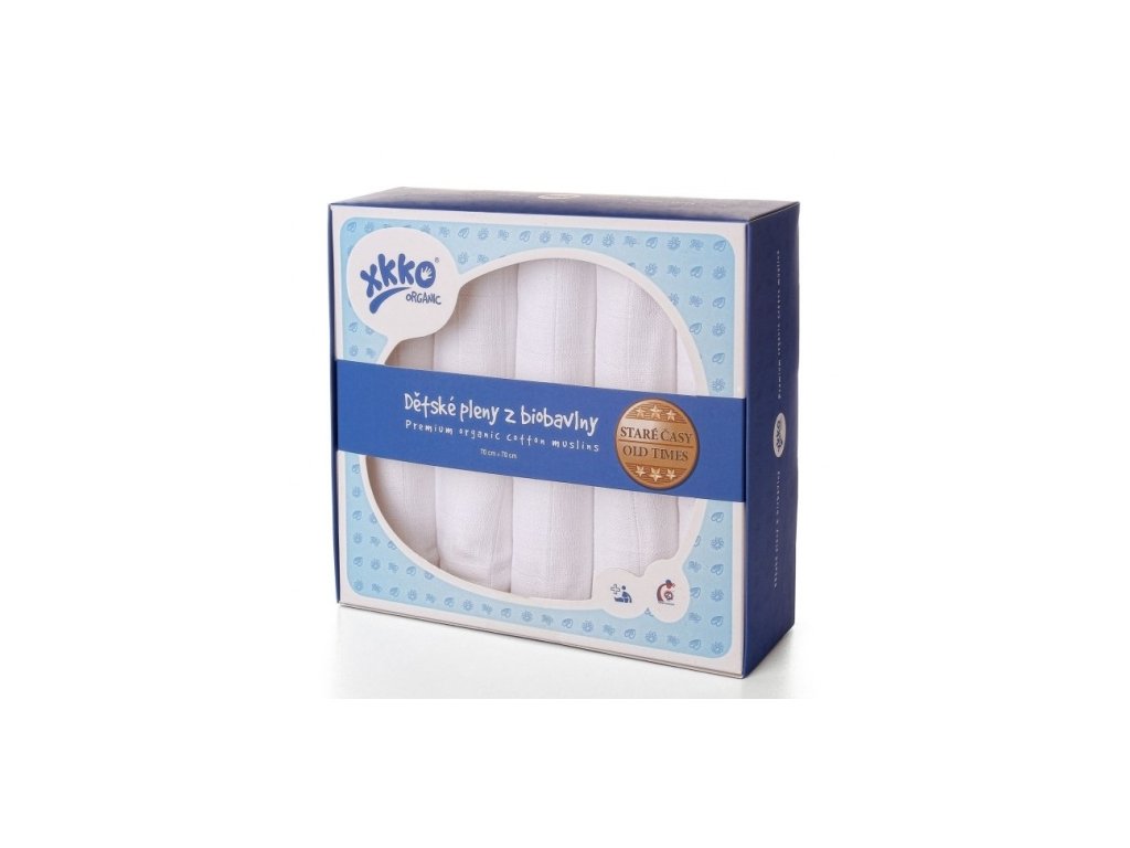 Dětské pleny z biobavlny XKKO Organic 70x70cm Staré časy - bílé