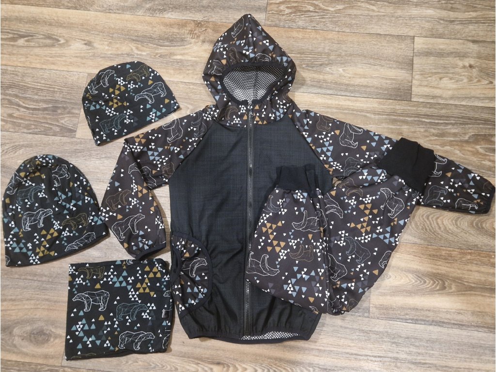 BAZAR, softshellový set jaro/podzim, Origami medvěd, vel. 122