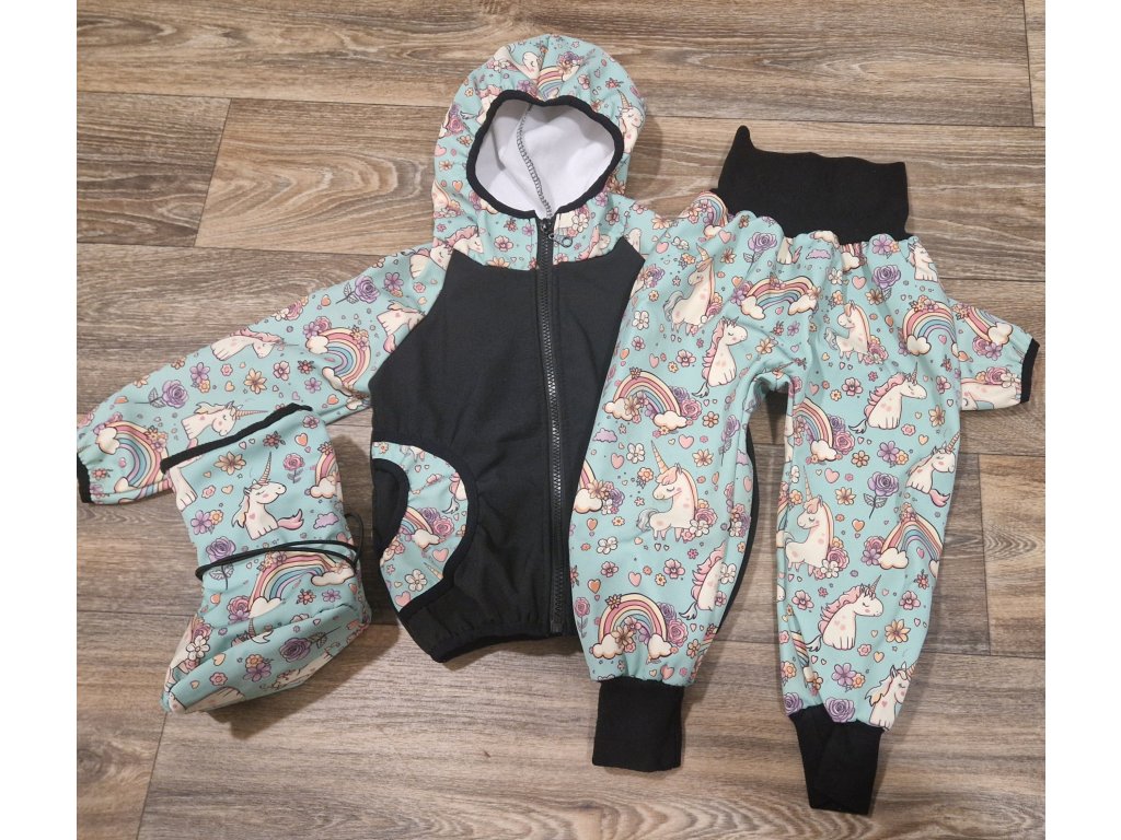 BAZAR, softshellový set zimní, Jednorožci na mintu, vel. 92