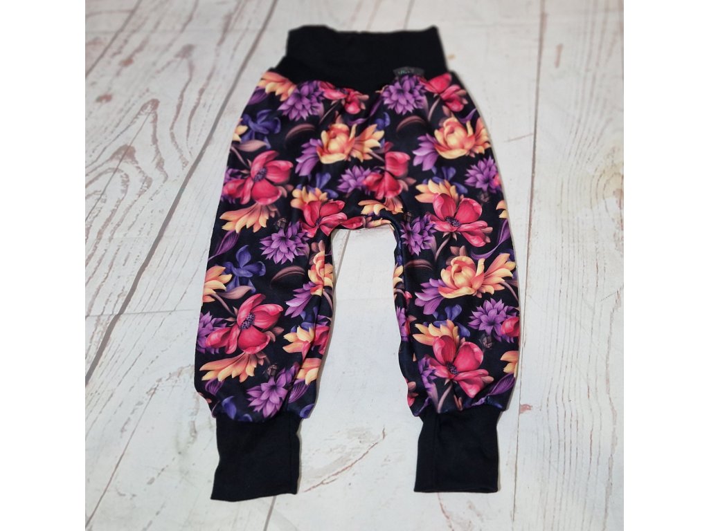 Flísové tepláky Yháček, Květy na tmavém podkladu