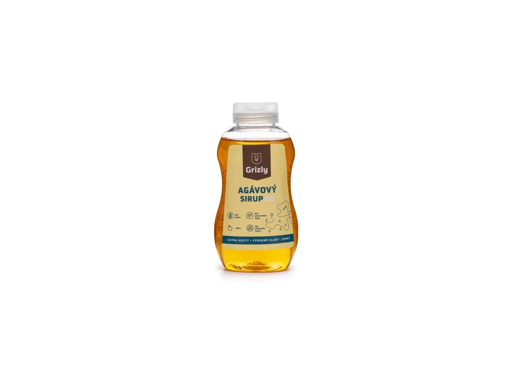 GRIZLY Agávový sirup BIO 350 g/250 ml. Agávový sirup se vyrábí lisováním jádra z rostliny agáve. Agáve je nejrozšířenější v Mexiku a jižní Americe a kromě lahodného přírodního sladidla se z něj vyrábí tequila. Náš sirup je vyráběn za velmi nízkých teplot, aby se co nejvíce zachovaly přírodní vlastnosti rostliny . Jeho konzistence je podobná medu, i když je o něco řidší a více tekutá. Oproti medu má tu výhodu, že je rostlinného původu a je tedy vhodný i pro vegany. Proč chtít GRIZLY Agávový sirup BIO:. ✅ je rostlinného původu ✅ konzistencí se podobá medu. Jak ho využít. Agávovým sirupem můžete zcela nahradit med nebo klasický cukr. Při tepelné úpravě je dobré snížit teplotu pečení a vaření alespoň o 10°C. Sirup můžeme využít jako polevu na palačinky nebo vafle, na výrobu zmrzliny a sladkých drinků nebo na pečení. Věděli jste, že..... biopotraviny vždy prochází systémem kontrol a certifikace, který zajišťuje jejich kvalitu a umožňuje jim nést toto označení? Jejich biokvalitu docení především lidé se zájmem o ekologické zemědělství a udržitelný systém hospodaření. Administrativní zařazení: sladidla Složení : Sirup z agáve* 100% *CZ-BIO-003 produkt ekologického zemědělství Země původu: Mexiko Skladování: Skladujte na temném, chladném a suchém místě. Balení: Plastová lahvička s odklápěcím víčkemDoplňkové parametry