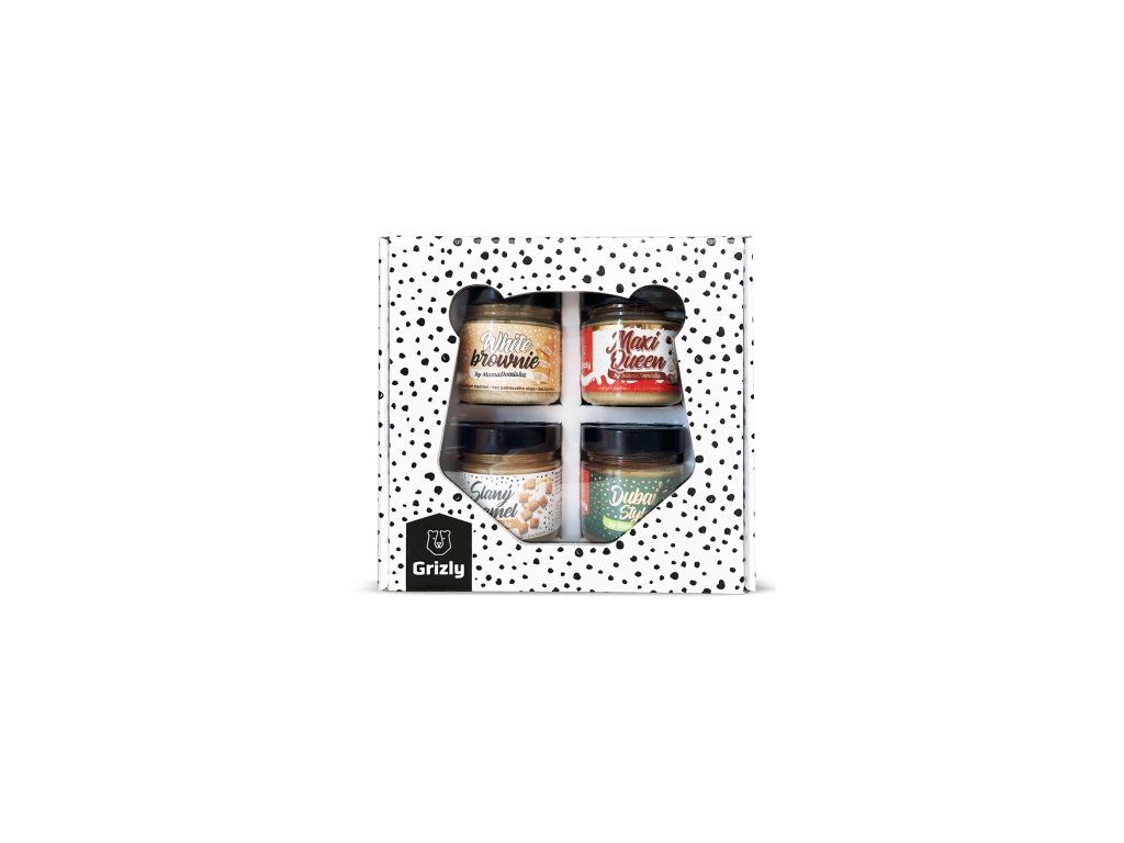 GRIZLY Bestseller set 2025 by @mamadomisha. To nejlepší z nejlepších! Lepší kombinace chutí už snad ani neexistuje. Jestli máte rádi oříškové krémy by @mamadomisha, náš Bestseller set budete milovat, to nám věřte. Do jedné krabice jsme totiž nechali zabalit vaše nejoblíbenější dezerty ve skleničce, takže si je už nebudete muset objednával zvlášť. Pěkně pohromadě si uvnitř hoví pistáciový krém Dubai style spread inspirovaný slavnou dubajskou čokoládou, ke kterému se připojuje nezpochybnitelná královna mezi oříškovými krémy Maxi Queen skvěle kombinující lískové oříšky a belgickou bílou čokoládu. Pečlivě vybranou hvězdnou sestavu doplňují léty prověřené klasiky Slaný karame l a White Brownie. Doporučujeme jednotlivé krémy otevírat a ujídat postupně, aby vám tahle dobrota vydržela co nejdéle. V nabitém Bestseller setu najdete:. pistáciový krém Dubai style spread lískooříškový krém Maxi Queen arašídový krém Slaný karamel lískooříškový-kešu krém White BrownieDoplňkové parametry