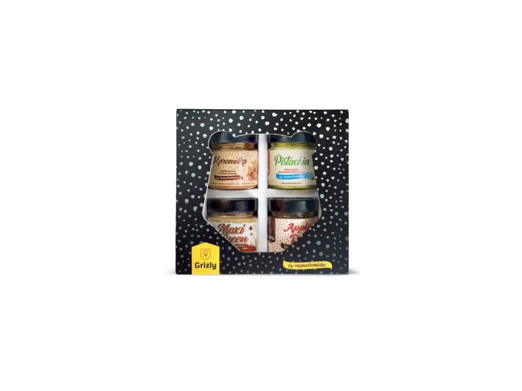 GRIZLY GRIZLY Erikův výběr by @mamadomisha. Využijte jedinečnou možnost ochutnat Erikovy srdcovky! V krásné dárkové krabici opatřené Erikovým podpisem vám domů přijde jedno velké oříškové pokušení. Radost udělá všem, kteří mají podobě chutě jako Erik. A co se tedy v Erikově výběru ukrývá? Hned čtyři skvěle chutnající ořechové krémy – odlehčená verze pistáciového krému Pistachia FIT, jablečný koláč ve skleničce Apple Pie, jemné arašídové máslo s kousky karamelu Karamelka. Ve výběru nesmí chybět ani královna mezi oříškovými krémy Maxi Queen. Potěšte své blízké nebo sebe originálním jedlým dárkem. Nezapomeňte vyzkoušet také další produkty by @mamadomisha V dárkové sadě Erikův výběr najdete:. odlehčená verze luxusního pistáciového krému Pistachia FIT pekanovo-mandlový krém Apple Pie s kousky lyo jablek a slaného karamelu jemné arašídové máslo s kousky karamelu Karamelka královna mezi oříškovými krémy Maxi QueenDoplňkové parametry