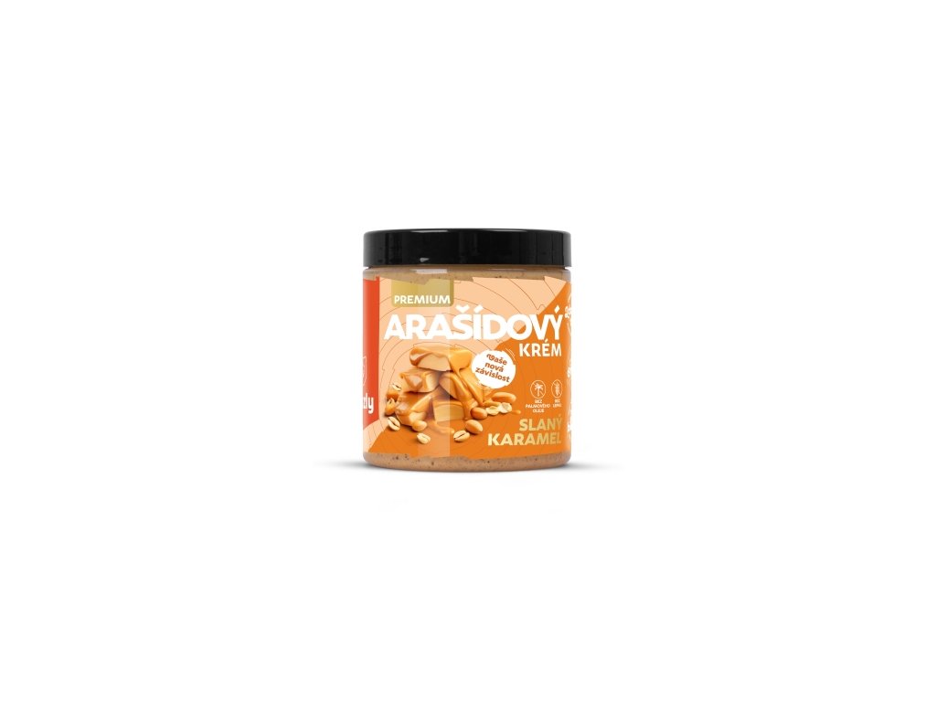 GRIZLY Arašídový krém slaný karamel premium 250 g. Přemýšleli jsme, čím ochutit náš arašídový krém, až nám to došlo! Slaný karamel, to je ta správná volba! Kombinace dokonale jemného arašídového másla, které vyrábíme z nasucho pražených arašídů, s lahodnou belgickou bílou karamelovou čokoládou je doslova pastvou pro vaše chuťové buňky. Jakmile ji ochutnáte, bude se jen těžko přestávat. Něco nám říká, že se promění ve vaši novou závislost. A vlastně, proč ne? Pokud byste si ještě chtěli trošku zahřešit, doporučujeme upřít pozornost na arašídový krém s belgickou čokoládou. Proč chtít GRIZLY jemný arašídový krém slaný karamel. krémová konzistence vyrobený z prémiových oříšků bez přidaného cukru bez palmového oleje Na co je dobré arašídové máslo. Burákovým máslem si ochutíte smoothie, proteinový koktejl nebo ranní kaši. Případně zkombinujte arašídový krém s nakrájeným ovocem a vytvořte si rychlou svačinu nebo snídani. Když už je řeč o snídani – doporučujeme vyzkoušet nadýchané banánové lívance s ořechovým krémem. Recept je rychlý a snadný, tak směle do toho. Věděli jste, že... …ořechová másla a krémy vyrábíme každý týden v malých sériích? Můžeme tak zaručit výjimečnou kvalitu u každého kusu. GRIZLY arašídové máslo navíc odpovídá požadavkům na zdravé arašídové máslo, protože k jeho výrobě se používají pouze arašídy. Žádné další přidané cukry, oleje nebo aditiva v něm nenajdete. arašídový krém slaný karamel výživové údaje na 100 g energetická hodnota 594 kcal bílkoviny 17,6 g vláknina 5,9 g 100% arašídový krém jemný výživové údaje na 100 g energetická hodnota 632 kcal bílkoviny 29,0 g vláknina 8,0 g mandlový krém jemný výživové údaje na 100 g energetická hodnota 598 kcal bílkoviny 21,0 g vláknina 12,0 gDoplňkové parametry