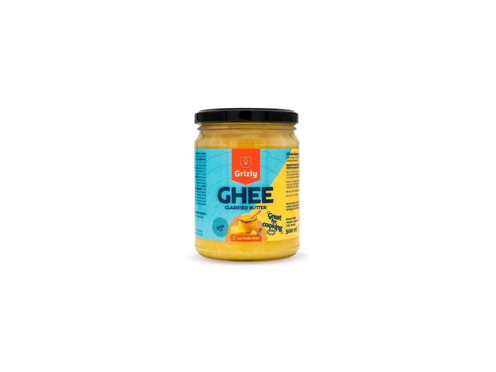 GRIZLY Ghí přepuštěné máslo 500 ml. Ghí neboli přepuštěné máslo nebo také šmelc je čistý mléčný tuk, který se připravuje velice pomalým přepouštěním másla. Při této proceduře se z másla odpařuje voda a vznikající pěna, ve které jsou mléčné bílkoviny, cukry a další látky, které obsahuje běžné máslo. Výsledným produktem je opravdu čistý tuk, který má žlutou barvu a lahodnou máslovou vůni. Ghí má vysoký kouřový bod, který se pohybuje okolo 240 °C, při pečení nebo smažení nedochází k přepalování. Jak GRIZLY Ghí máslo využít. Ghí má velmi podobné využití jako klasické máslo. Skvěle se hodí na základy polévek, omáček a jíšek. Použijte ghí při restovaní zeleniny, nebo jím pokrmy naopak na závěr potřete, na zjemnění chuti. Ghí si můžete vzít s sebou i když cestujete, protože jej není nutné uchovávat v lednici.Doplňkové parametry
