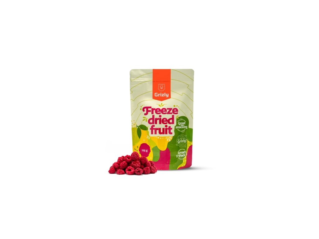 GRIZLY Maliny lyofilizované XXL 125g. Kdo by neměl rád maliny?! Ty naše jsou díky sušení mrazem křupavé a zabalené v krásném obalu, který jde kdykoli otevřít a zase zavřít. Jakmile tedy dostanete chuť, stačí z něj vysypat hrst do misky a pustit se do mlsání. Lyo maliny se kromě mlsání hodí také do jogurtů, kaší, smoothie nebo proteinů, případně je můžete využít při pečení. Stejné XXL balení, v jakém jsou zabalené lyo maliny, najdete také u ostatního ovoce sušeného mrazem. Nemusíte se tak bát, že byste ho neměli dostatek. Můžete vyzkoušet třeba velké balení lyofilizovaných jahod nebo rovnou křupavý lyo mix Šestku. Pro milovníky čokolády pak máme připravené lyofilizované ovoce v čokoládě. Proč chtít GRIZLY mrazem sušené maliny. neobsahují přidaný cukr šetrně sušeným mrazem zdroj vápníku Věděli jste, že…. …lyofilizace je proces sušení hlubokým mrazem za velmi nízké teploty a tlaku? Dochází k vysušení přirozeně obsažené vody, proto je lyofilizované ovoce tak křupavé. Navíc si v maximální možné míře zachová svou původní barvu, chuť, vůni a všechny minerální látky a vitamíny. Plno zajímavostí o mrazem sušeném ovoci najdete v našem článku. Tak si ho neváhejte přečíst..Doplňkové parametry
