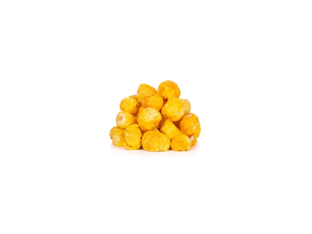GRIZLY Mochyně lyofilizovaná 50 g. Mochyně, známá i pod názvem physalis, je sušená mrazem a má příjemně nakyslou chuť a jemnou vůni. Tvar a barva jsou zachované díky šetrnému procesu zpracování. Vyzkoušejte ji k ochucení domácí limonády, s jogurtem nebo mlékem. Administrativní zařazení: Sušené jednodruhové ovoce Složení: Lyofilizované plody mochyně peruánské (physalis) 100 % Může obsahovat stopy lepku a arašídů. Země původu: Německo Skladování: Skladujte v suchu a temnu, při teplotě 15 - 18°C. Sáček vždy pečlivě uzavřete, aby nedošlo k navlhnutí obsahu.Doplňkové parametry