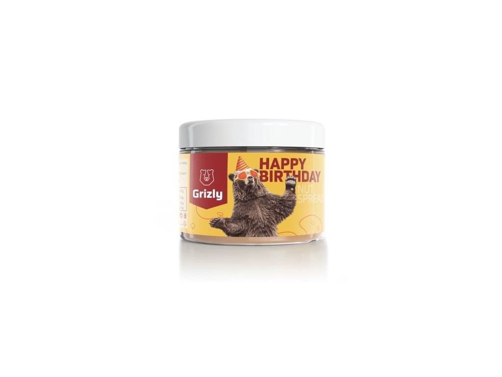 GRIZLY Narozeninový oříškový krém 500 g. Jedinečná kombinace lískových a kešu ořechů je doplněná bílou čokoládou s karamelem. Obdarujte své blízké originálním a jemně krémovým oříškovým krémem Jako vždy se můžete spolehnout na prvotřídní kvalitu všech vstupních surovin a také vyladěnou recepturu. Nejprve nasucho opražíme oříšky, které potom důkladným mletím přetvoříme na velmi jemnou pastu. Přidáme rozpuštěnou čokoládu, pořádně vše zamícháme a poté i našleháme. Nadýchaný krém ihned balíme do praktických dóz. Ořechový krém si můžete namazat na pečivo, přidat do ranní kaše nebo do smoothie, kterému tak dodáte nejen skvělou chuť, ale i bílkoviny a tuky. Pokud máte chuť na něco dobrého, zkuste krém zkombinovat s ovocem. A nejlepší je jen tak samotný na lžičce. Proč chtít GRIZLY narozeninový oříškový krém :. originální dárek pro vaše blízké jemná krémová konzistence vyroben z prvotřídních lískových a kešu ořechů bez palmového oleje GRIZLY tip. Ořechový krém v praktickém a designovém balení je ideální jako originální dárek pro toho, koho máte rádi a skvěle i doplní narozeninové pohoštění . Mimochodem, narozeninové máslo není jediným vymazleným narozeninovým produktem z medvědí dílny. Své blízké můžete obdarovat narozeninovým mixem nebo dárkovým boxem, který ukrývá rovnou 12 dobrot.Doplňkové parametry
