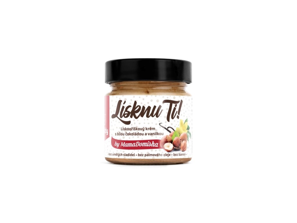 GRIZLY Lísknu Ti! by @mamadomisha 250 g. Jemný krém s výraznou lískooříškovou chutí, doplněný bílou čokoládou, potěší každého milovníka nevšedních chutí. Vychutnejte si každou lžičku. Ořechový krém je nejlepší jen tak samotný nebo společně s čerstvým ovocem. Také skvěle dochutí vaši ranní kaši a oblíbené smoothie. Můžete si jej namazat na pečivo, použít při výrobě domácích dezertů či dochutit lívance. Nezapomeňte vyzkoušet také další produkty by @mamadomishaDoplňkové parametry