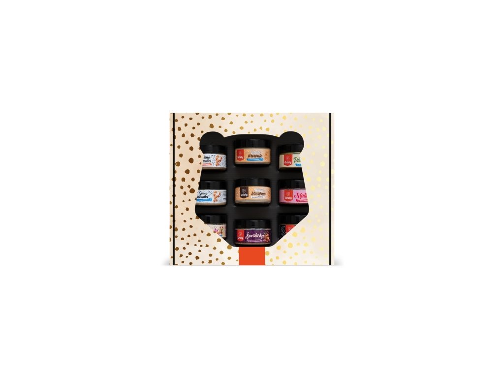 GRIZLY Ochutnávkový set by @mamadomisha 9×60 g. Ochutnávkový set dělá skutečně čest svému jménu. Do krásné krabice s věnováním jsme nechali zabalit rovnou 9 malých 60g skleniček s pečlivě vybranými oříškovými krémy by @mamadomisha tak, abyste je postupně všechny mohli ochutnat a nemuseli si kvůli tomu kupovat každou příchuť zvlášť. I když samozřejmě můžete, to je na vás. Každopádně náš Ochutnávkový set je takovou vstupenkou jistoty do GRIZLY světa by @mamadomisha. Najdete v něm ovocnou zahrádkou inspirované krémy Švestička a Malina, barevnou Lentylkádu nebo skrz na skrz zelenou Pistachiu. Sestavu doplňují stálice Slaný karamel a Brownie. Nezapomněli jsme ani na FIT nadšence a do setu přibalili FIT verzi Slaného karamelu, Pistachie a White Brownie. Jak vidíte sami, je opravdu z čeho vybírat. Vsadíme se, že až vám Ochutnávkový set přijde domů, nebudete vědět, do které skleničky se pustit dříve. Z čeho jsme ochutnávkový set by @mamadomisha sestavili. mandlového krému s lyo švestkami Švestička lískooříškového krému s malinovým prachem Malina arašídového krému s křupavými lentilkami Lentylkáda pistáciového krému s bílou čokoládou Pistachia arašídového krému Slaný karamel lískooříškového-kešu krému Brownie z FIT verzí Slaného karamelu, Pistachie a White Brownie GRIZLY TIP. Pokud víte o někom, kdo na sladkém ujíždí, věnujte mu Ochutnávkový set jako dárek! Radost určitě udělá také Bestseller set, jenž v sobě ukrývá čtyři velmi oblíbené oříškové krémy z dílny GRIZLY by @mamadomisha .Doplňkové parametry