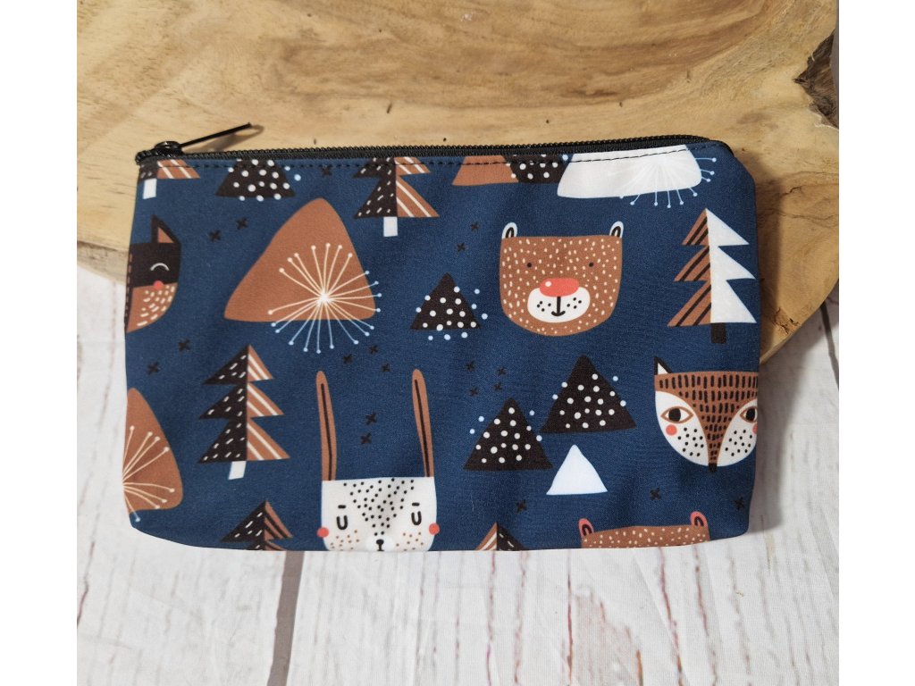 Kosmetická taštička Yháček, Lišky a medvědi na temně modré