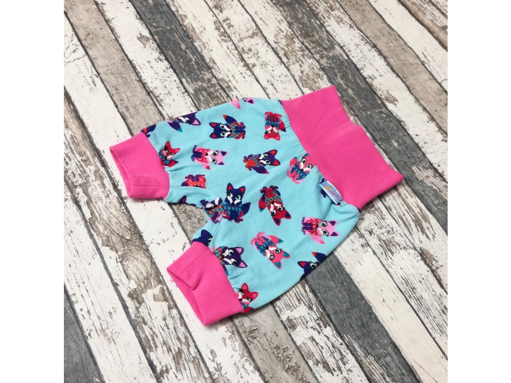 Parádní tříčtvrťáčy Yháček pro miminka i větší děti. Mají široké naplety v pase a u kotníčků. Náplety se dají zahnout, tím se zmenší velikost. Krásně sedí na jednorázové i látkové pleny. Volnější střih se sníženým sedem pro dokonalé pohodlí novorozence i batolete.