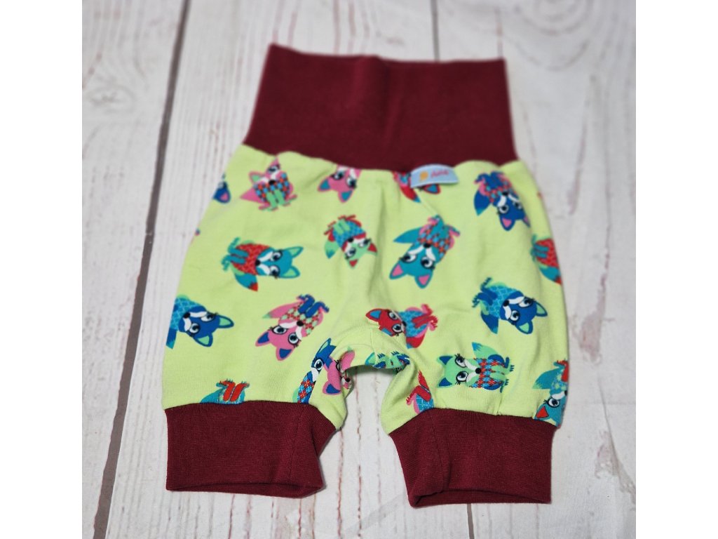 Kraťásky/tříčtvrťáky Yháček, Lišky na zelené/bordó, vel. 62, POSLEDNÍ KUS
