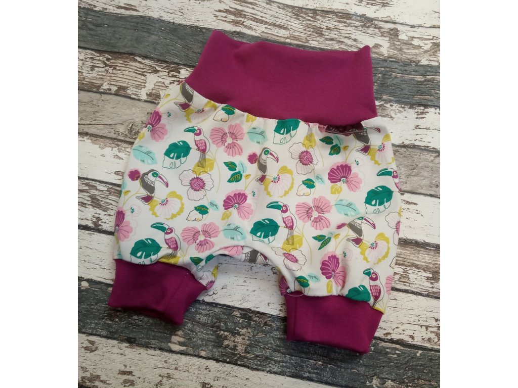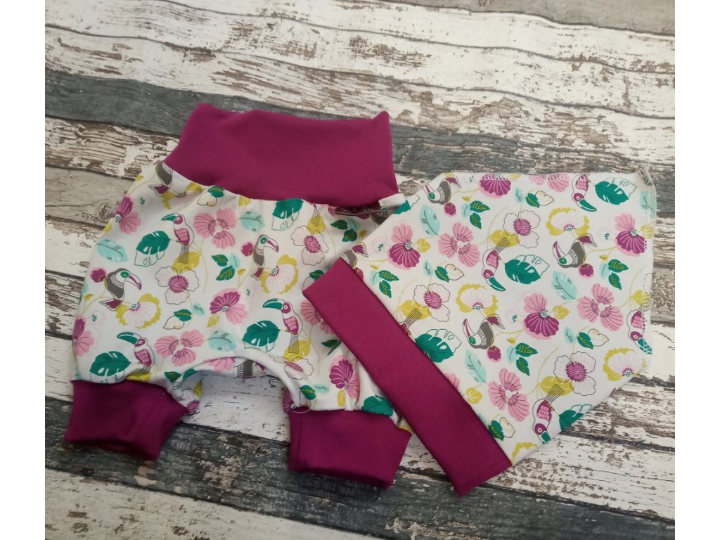 Parádní tříčtvrťáčy Yháček pro miminka i větší děti. Mají široké naplety v pase a u kotníčků. Náplety se dají zahnout, tím se zmenší velikost. Krásně sedí na jednorázové i látkové pleny. Volnější střih se sníženým sedem pro dokonalé pohodlí novorozence i batolete.