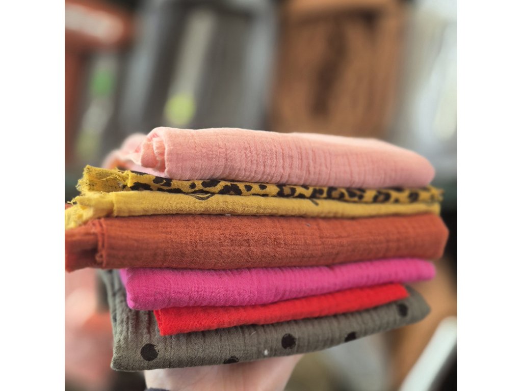Velmi oblíbená látka na letní tvorbu - tepláčky, šaty, kalhotky, halenky, šátky, ale také na čtvercové pleny, zavinovačky a jiný sortiment pro miminka. Moc příjemná látka na dotek, péče o ni je snadná a oblečení z ní se nosí samo :)