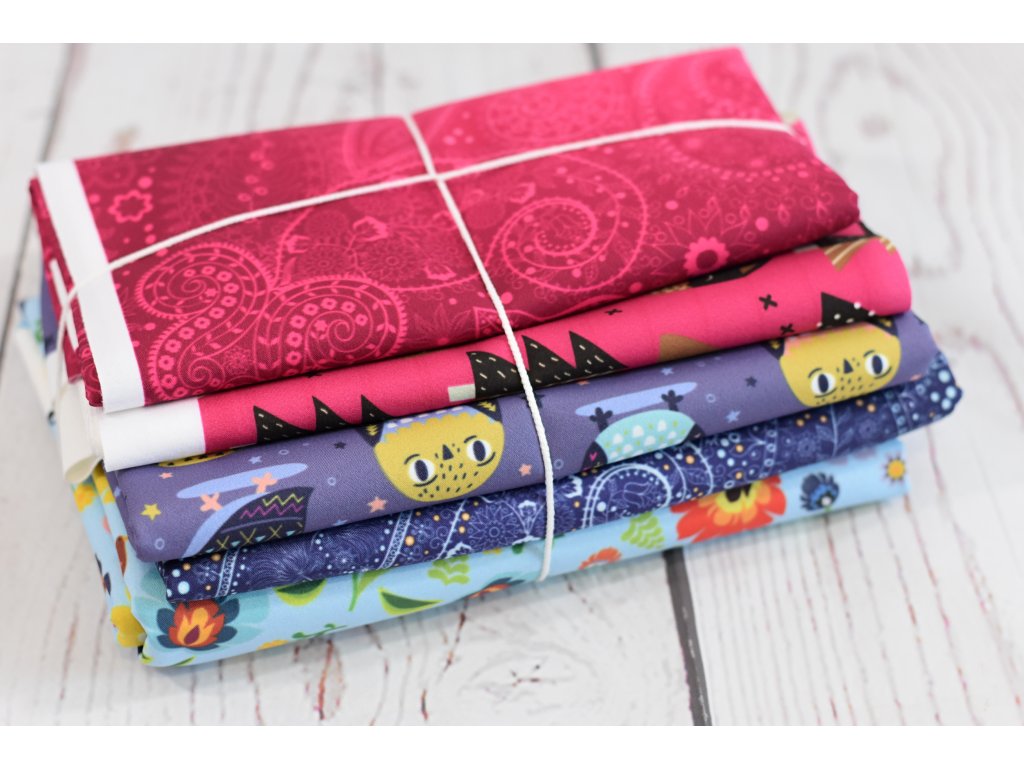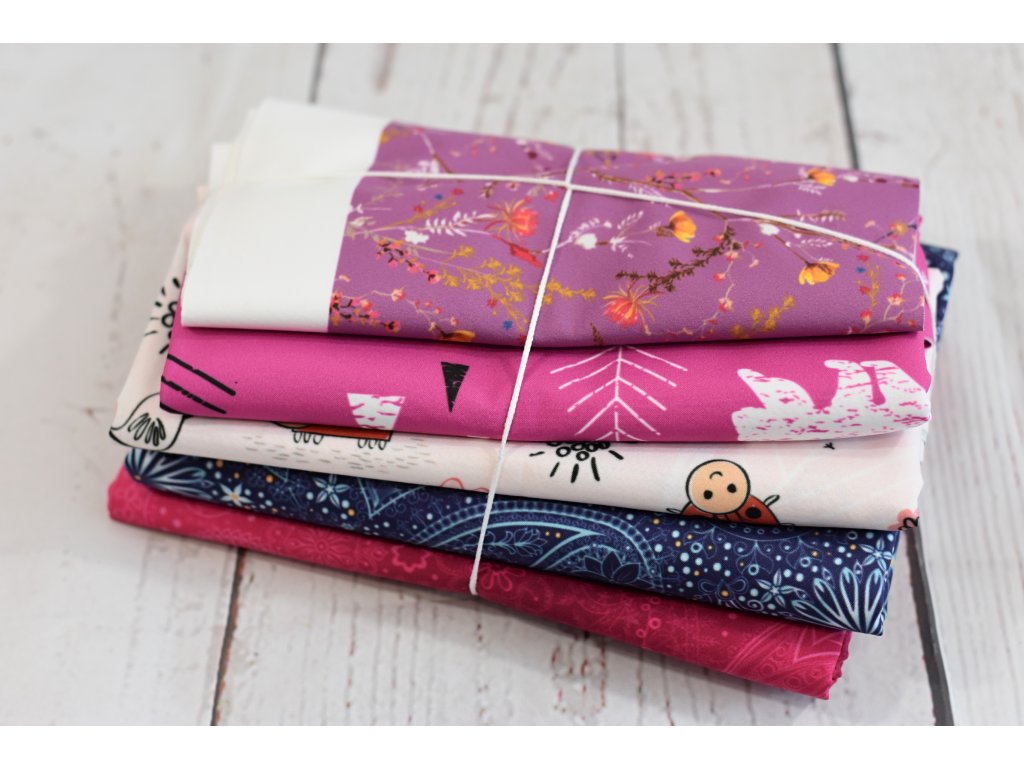 MYSTERY PACK - tajemný balíček látek. Menší kusy o plné šíři. Dohromady cca metr látek. Balíček obsahuje 3-6 různých vzorů, kousky mají 10-60 cm o šíři 150 cm.