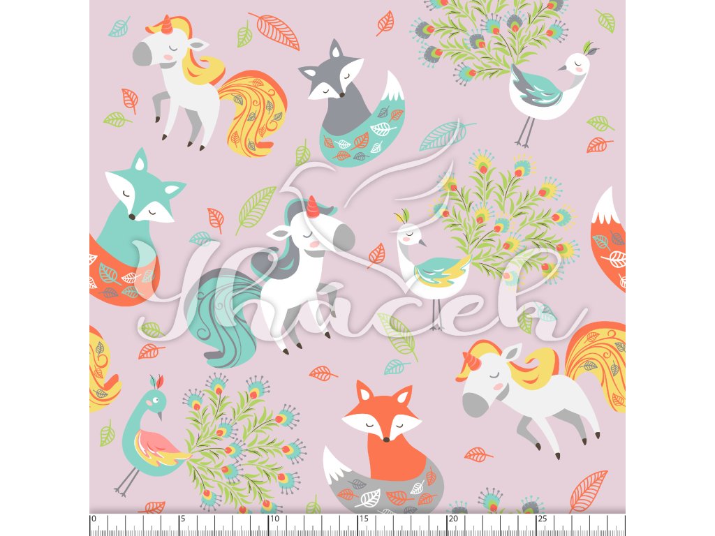Softshell letní, Lišky, jednorožci a pávi na fialkové
