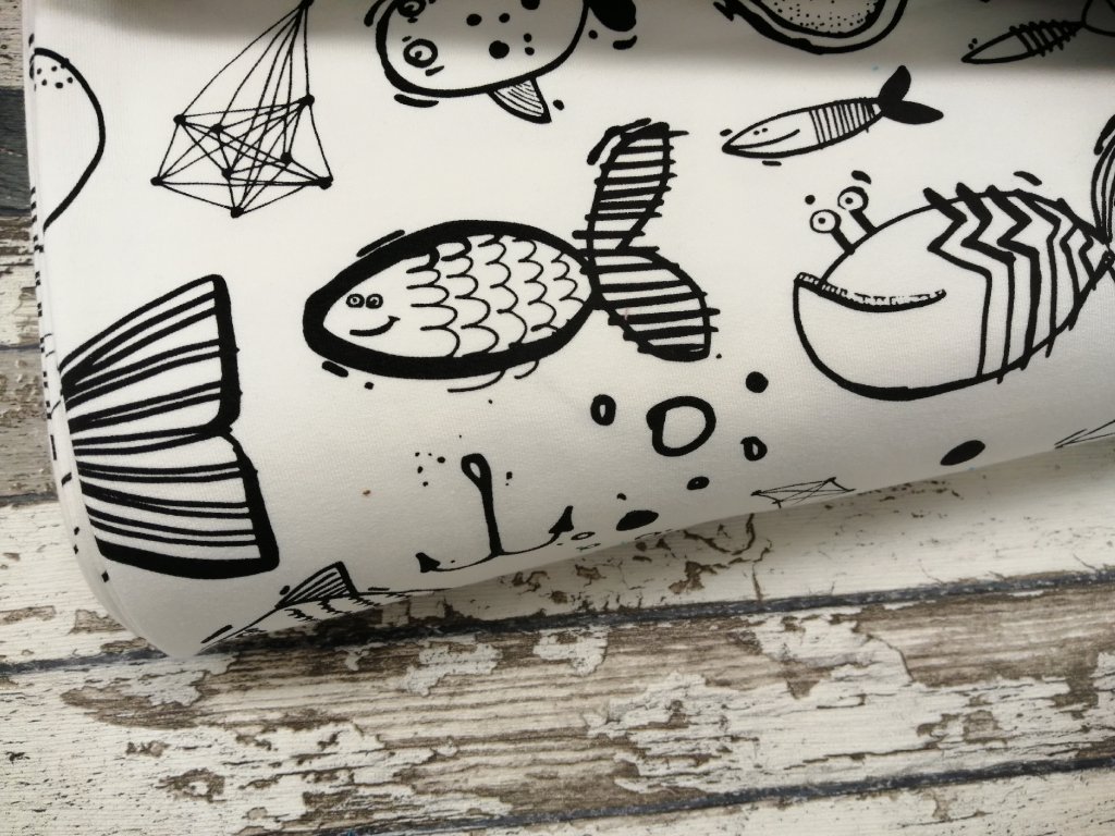 Teplákovina, ryby na ecru