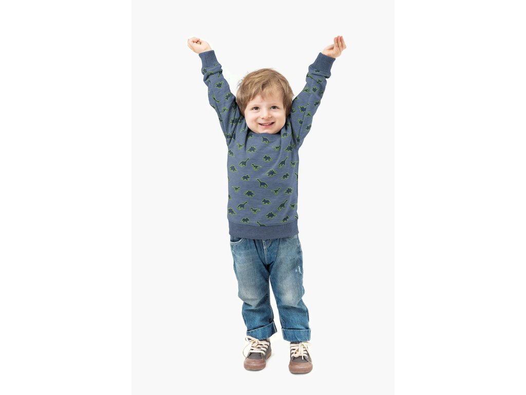 Teplákovina lemovaní dinosauři indigo