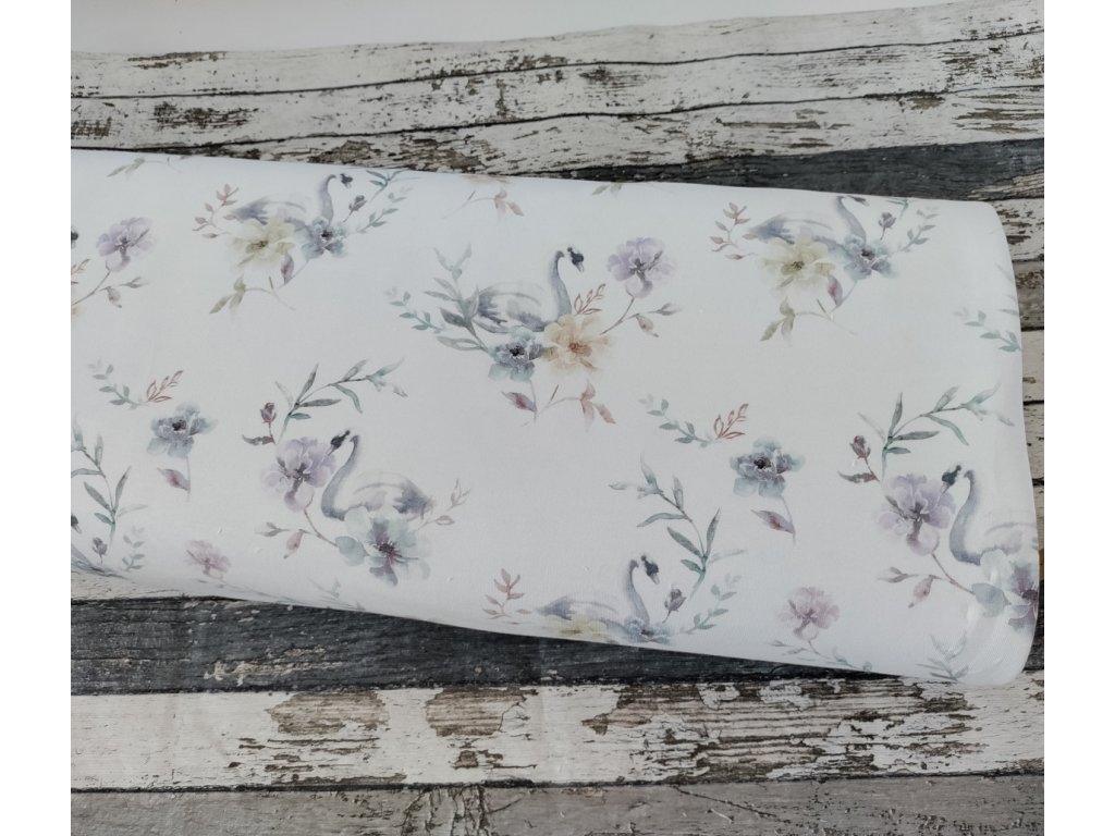 Teplákovina ORGANICKÁ BAVLNA, Labuť a květy