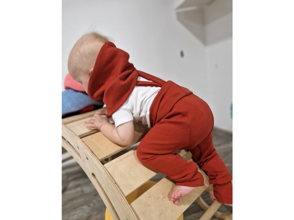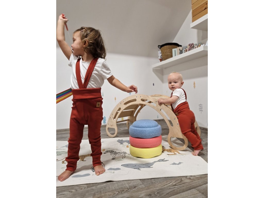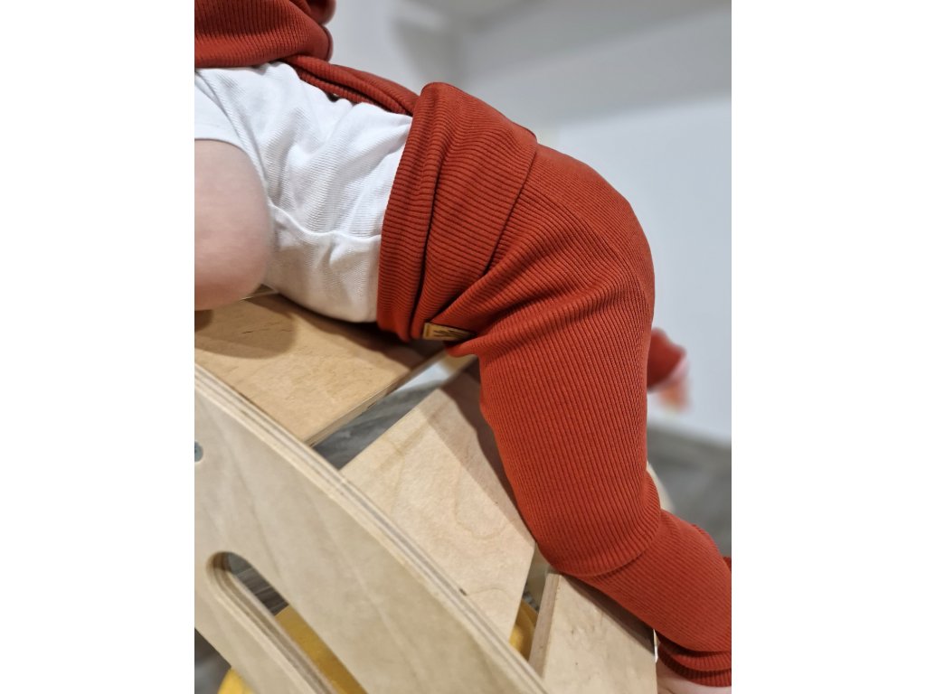 Pohodlné legínky z oblíbeného žebrovaného úpletu, který lahodí oku a je velmi příjemný na omak. Vysoký pas zajistí dokonalé pohodlí každému miminku, batoleti i běhajícím neposedům. Zahnete si ho dle potřeby, a tak jsou legínky rostoucí.