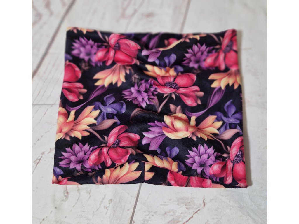 Flísový nákrčník Yháček, Květy na tmavém podkladu