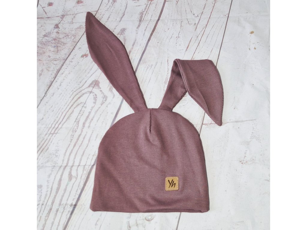 Čepice Yháček s oušky, žebrovaná, Dark old rose