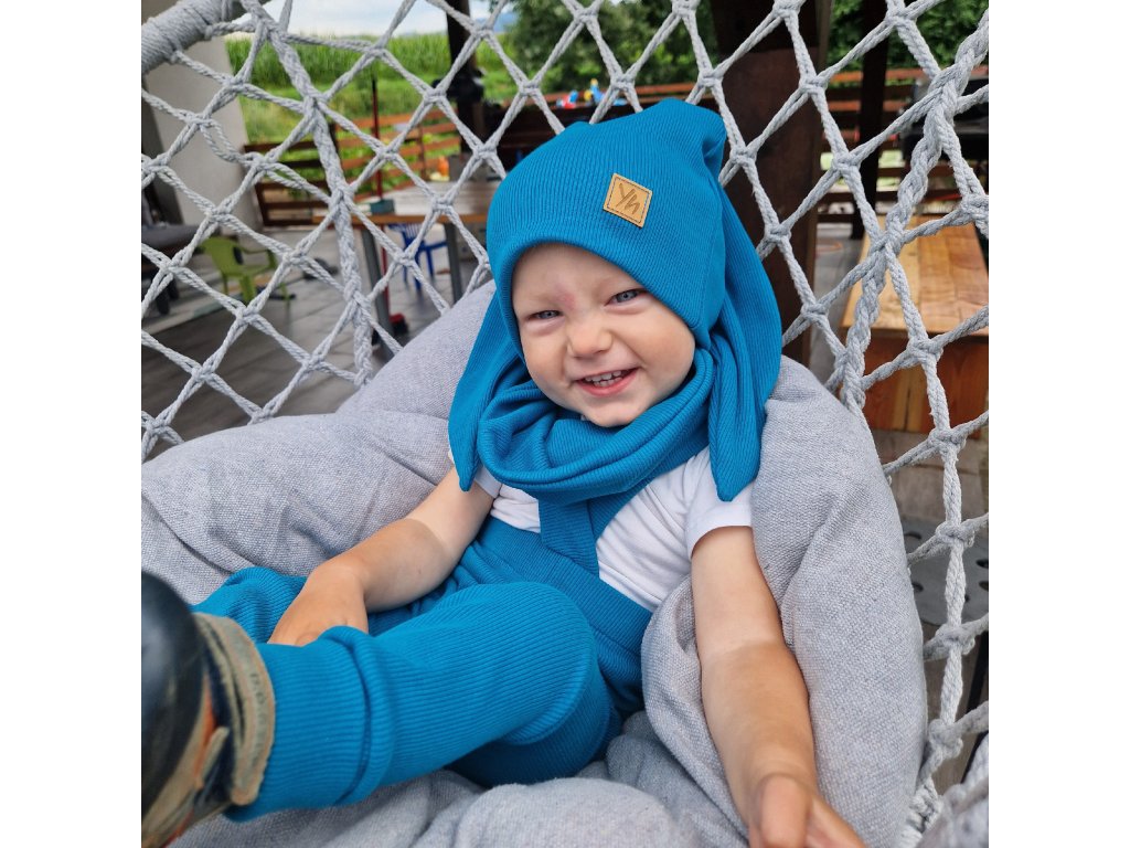 Trend letošní sezóny - to je čepička s oušky. Je ušita ze dvou vrstev kvalitního pružného bavlněného úpletu v provedení žebro. Je tedy extra pružná a přizspůsobí se každé hlavičce.