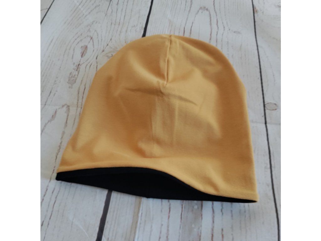 Šmoulí čepička Yháček, oboustranná, hořčicová/černá