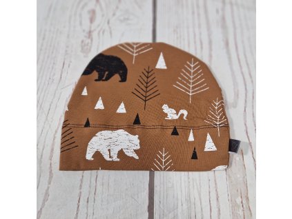 Šmoulí čepička Yháček, oboustranná, Lesní zvěř na karamelové