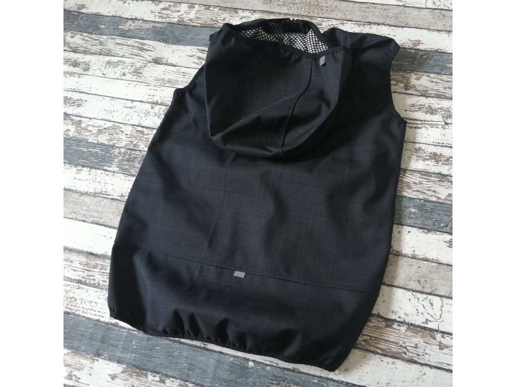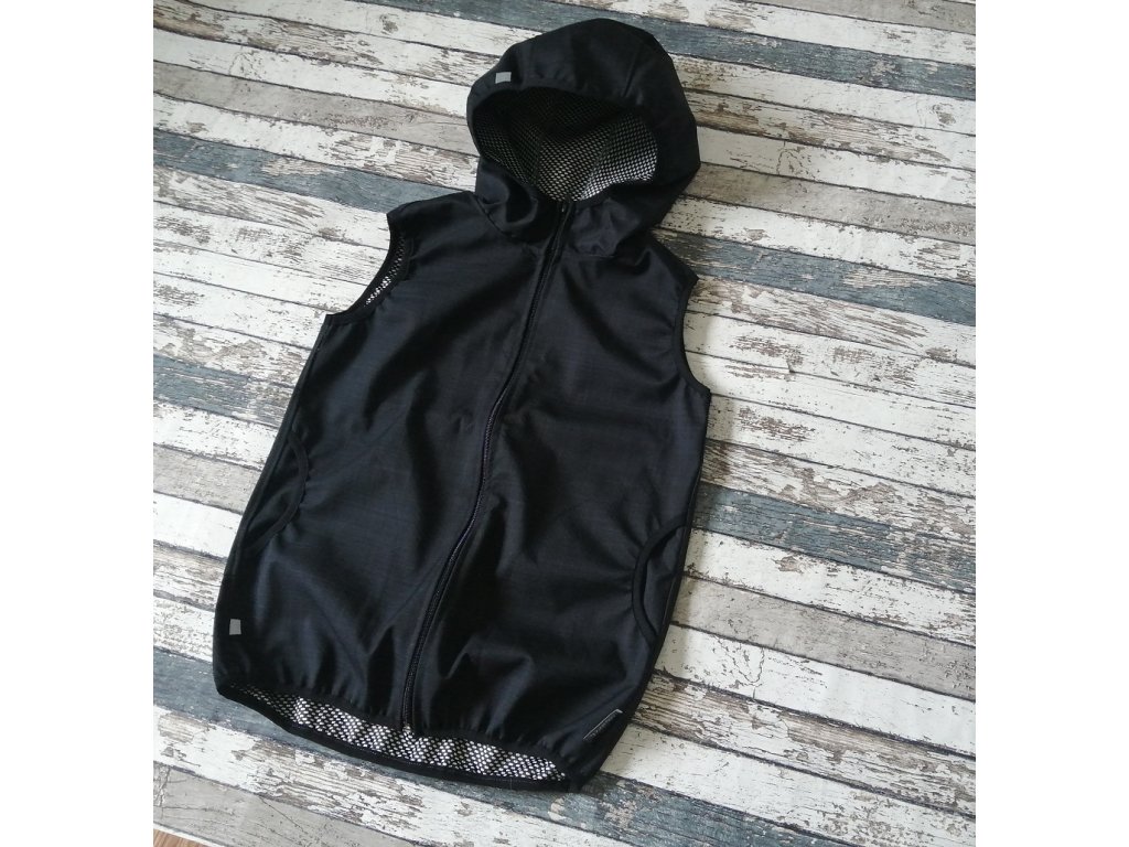 Funkční vesta Yháček z kvalitního softshellu, který nepromokne, neprofoukne a přebytečný pot a teplo odvádí od těla. Vesta má kapsy a kapucku. Je lemovaná pruženkou, lehce nabíranou, aby pod bundičku nefoukalo. Má reflexní prvky.