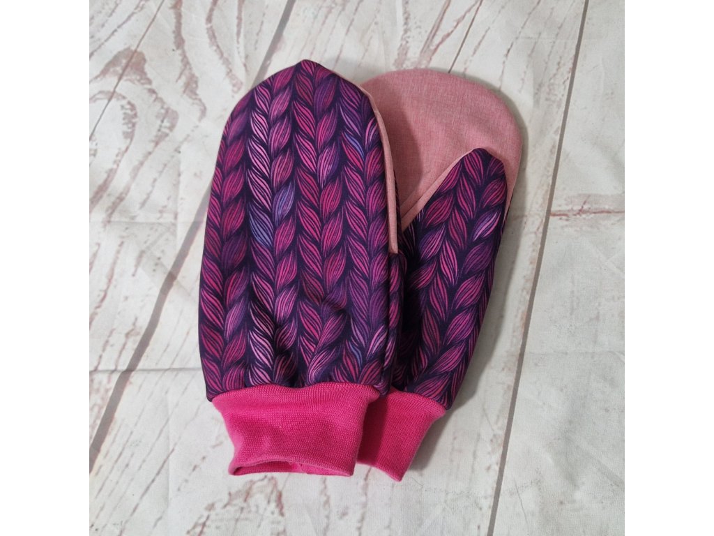 Softshellové rukavice, fialový copánek, L