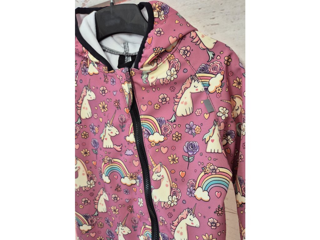 Rostoucí kombinéza softshellová, zimní s flísem, Jednorožci na starorůžové, celovzorovaná