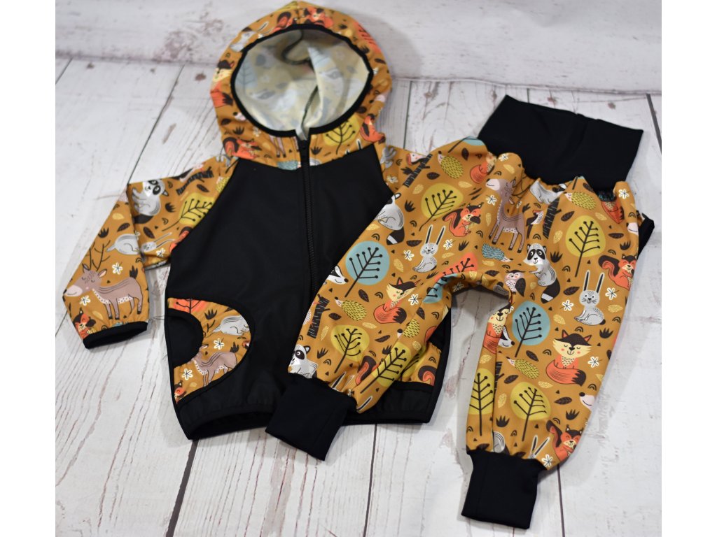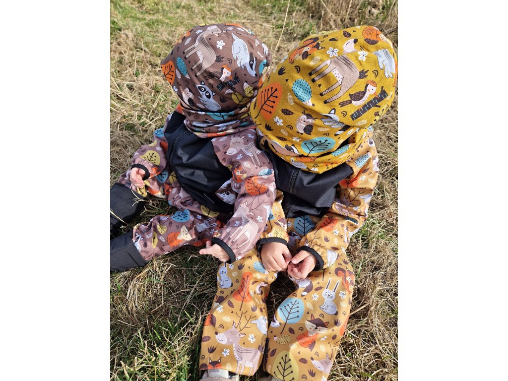 Softshellové kalhoty Yháček, letní, Lesní zvířátka okr