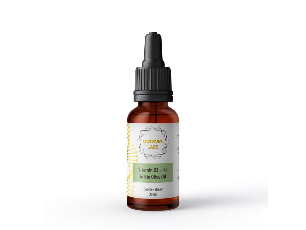 Vitamín D3 + K2 kapky v BIO olivovém oleji, 30 ml
