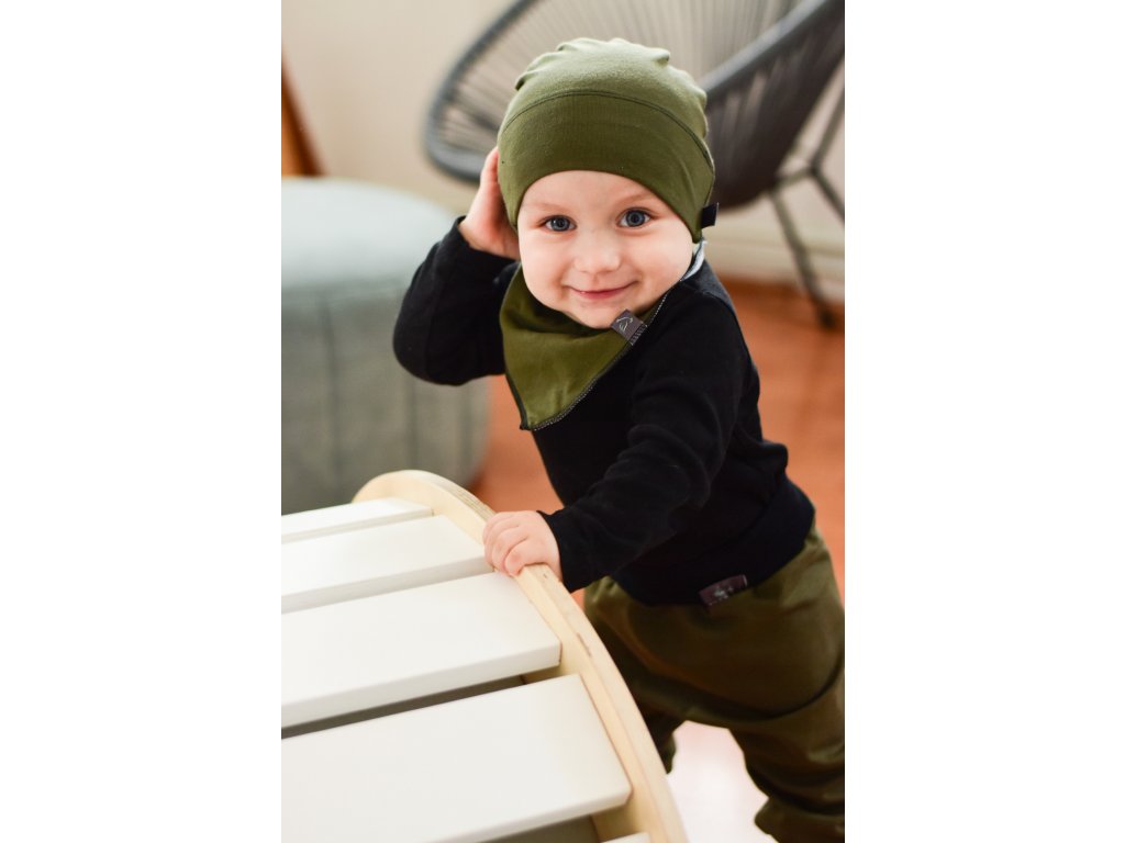 Rostoucí čepička Yháček z bavlněného úpletu. Je pružná, pohodlná, netlačí. Velikost se reguluje zahnutím lemu čepičky. Menší děti ji nosí zahnutou více, u větších dětí není nutno zahýbat vůbec.