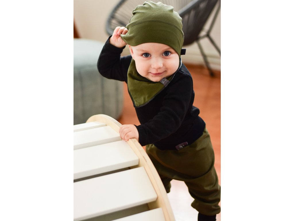 Rostoucí čepička Yháček z bavlněného úpletu. Je pružná, pohodlná, netlačí. Velikost se reguluje zahnutím lemu čepičky. Menší děti ji nosí zahnutou více, u větších dětí není nutno zahýbat vůbec.