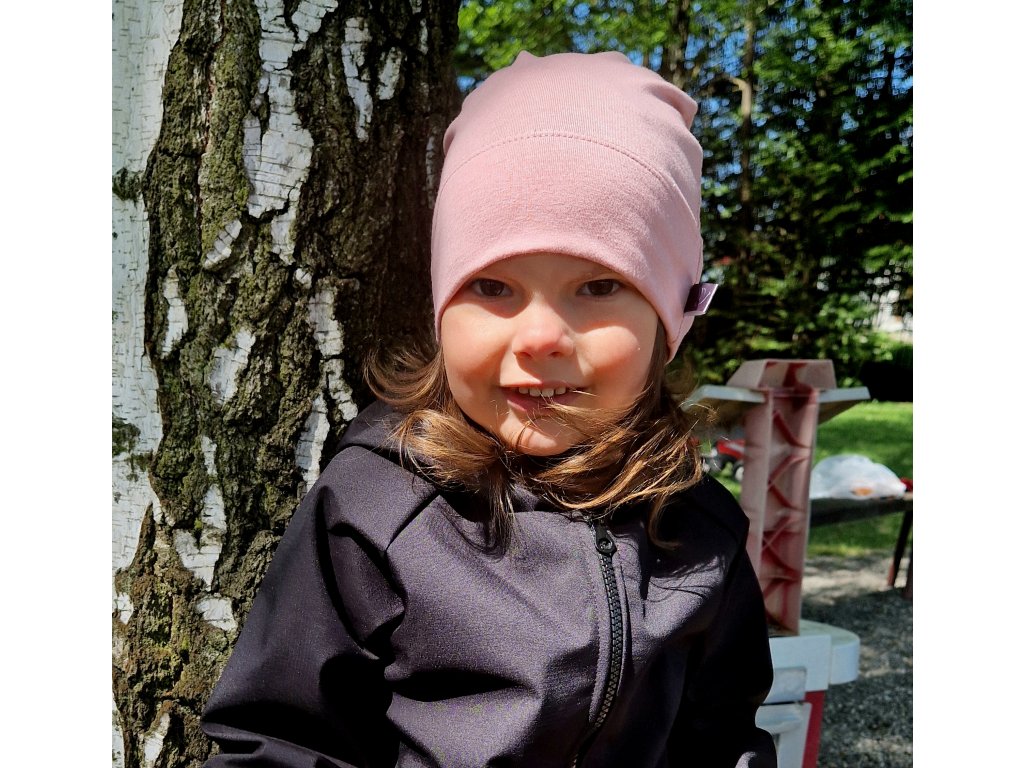 Rostoucí čepička Yháček z bavlněného úpletu. Je pružná, pohodlná, netlačí. Velikost se reguluje zahnutím lemu čepičky. Menší děti ji nosí zahnutou více, u větších dětí není nutno zahýbat vůbec.