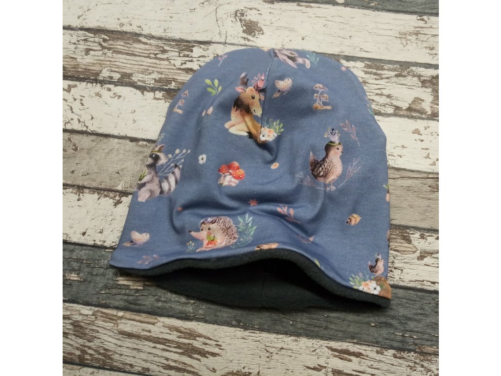 Šmoulí čepička Yháček, Boho les modrý, flís, POSLEDNÍ KUSY