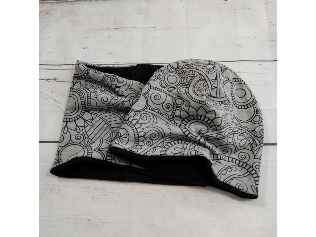 Šmoulí čepička Yháček, mehndi na tmavě šedém melíru, flís