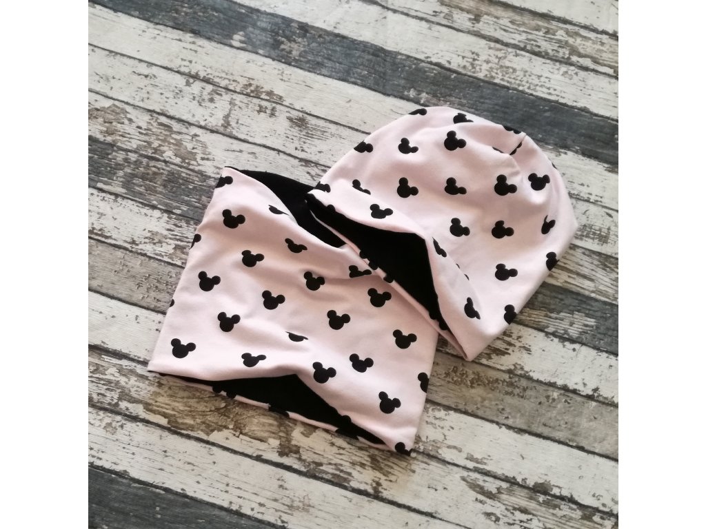 Šmoulí čepička Yháček, oboustranná, Myšák černé hlavy na růžové