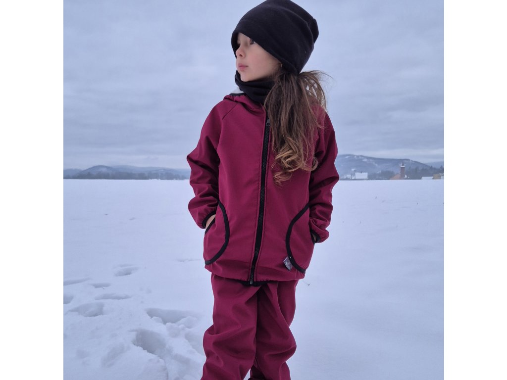 Funkční dětská bunda z nepromokavého softshellu s hřejivým beránkem na vnitřní straně. Odolá větru, dešti i sněhu – ideální na podzim i zimu. Bunda má praktickou kapucku, kapsy a je lemovaná pruženkou, která lehce pruží, takže k dítěti neprofoukne ani nenapadá sníh.