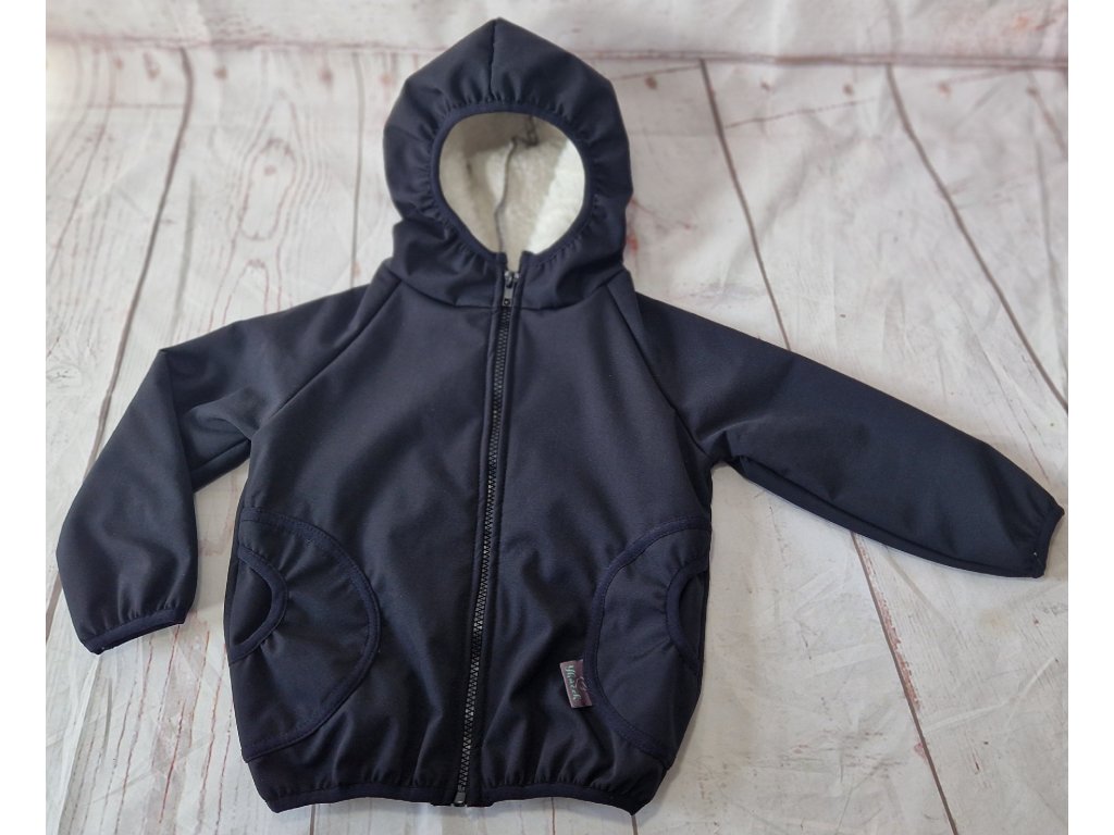 Funkční dětská bunda z nepromokavého softshellu s hřejivým beránkem na vnitřní straně. Odolá větru, dešti i sněhu – ideální na podzim i zimu. Bunda má praktickou kapucku, kapsy a je lemovaná pruženkou, která lehce pruží, takže k dítěti neprofoukne ani nenapadá sníh.