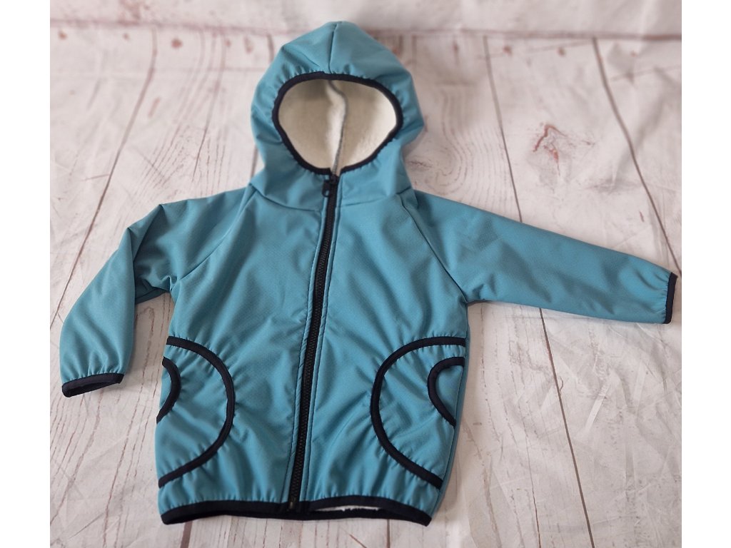 Funkční dětská bunda z nepromokavého softshellu s hřejivým beránkem na vnitřní straně. Odolá větru, dešti i sněhu – ideální na podzim i zimu. Bunda má praktickou kapucku, kapsy a je lemovaná pruženkou, která lehce pruží, takže k dítěti neprofoukne ani nenapadá sníh.