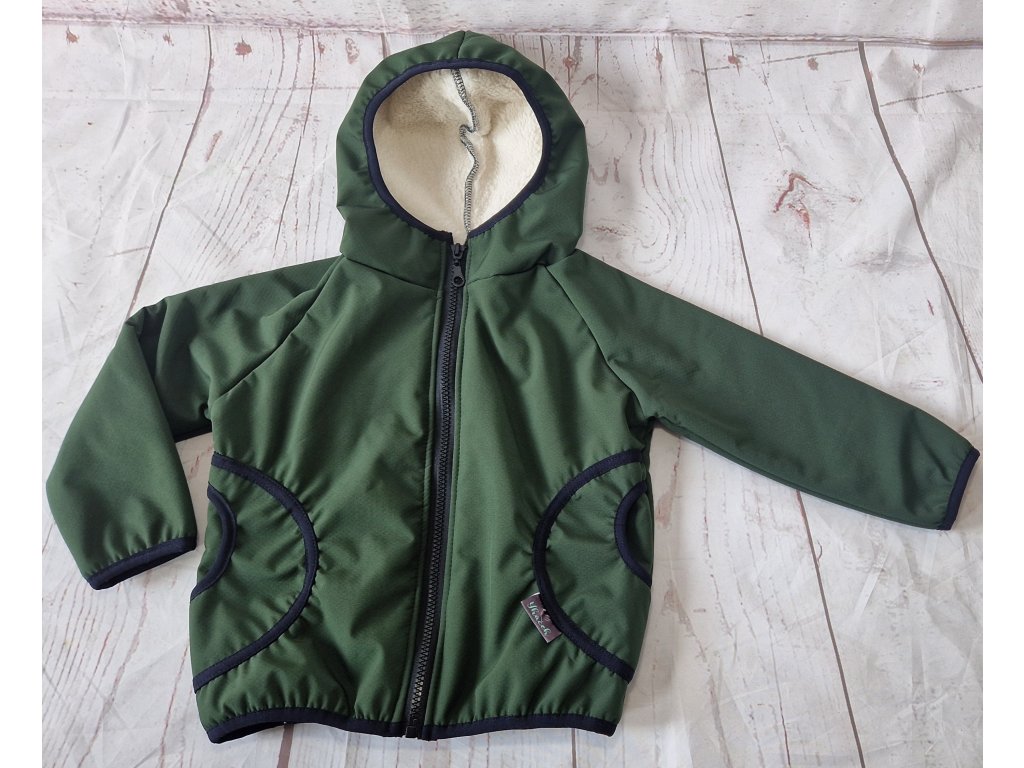 Funkční dětská bunda z nepromokavého softshellu s hřejivým beránkem na vnitřní straně. Odolá větru, dešti i sněhu – ideální na podzim i zimu. Bunda má praktickou kapucku, kapsy a je lemovaná pruženkou, která lehce pruží, takže k dítěti neprofoukne ani nenapadá sníh.