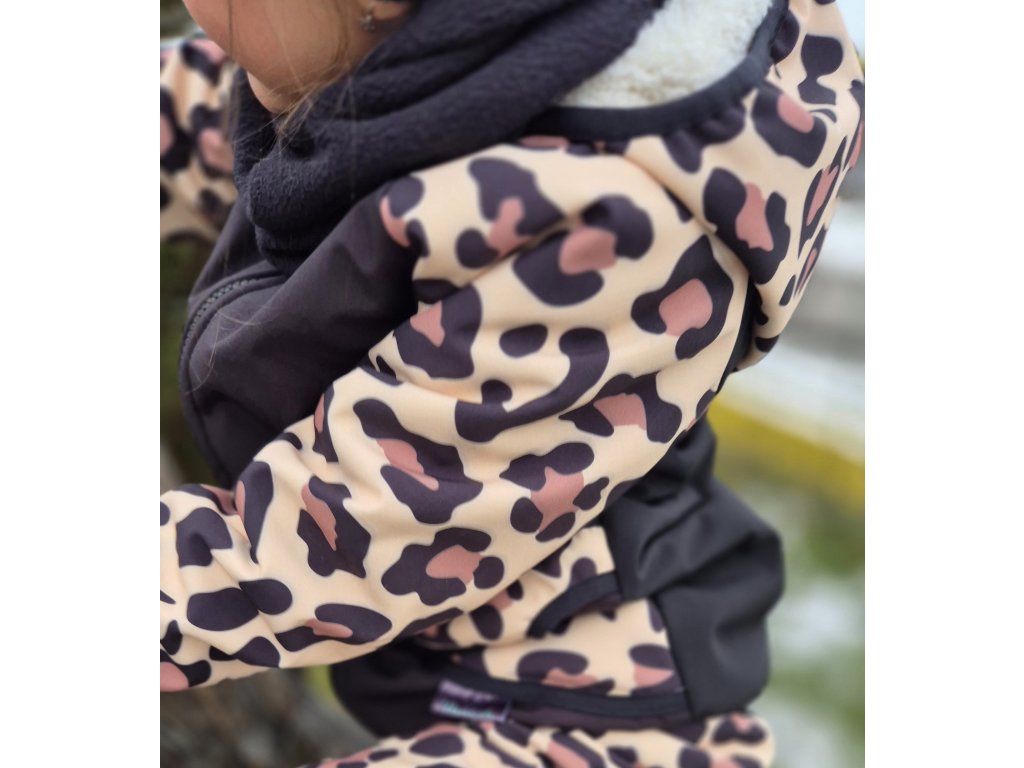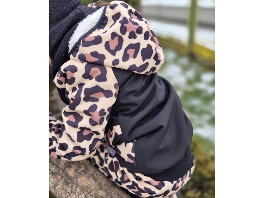 Funkční dětská bunda z nepromokavého softshellu s hřejivým beránkem na vnitřní straně. Odolá větru, dešti i sněhu – ideální na podzim i zimu. Bunda má praktickou kapucku, kapsy a je lemovaná pruženkou, která lehce pruží, takže k dítěti neprofoukne ani nenapadá sníh.